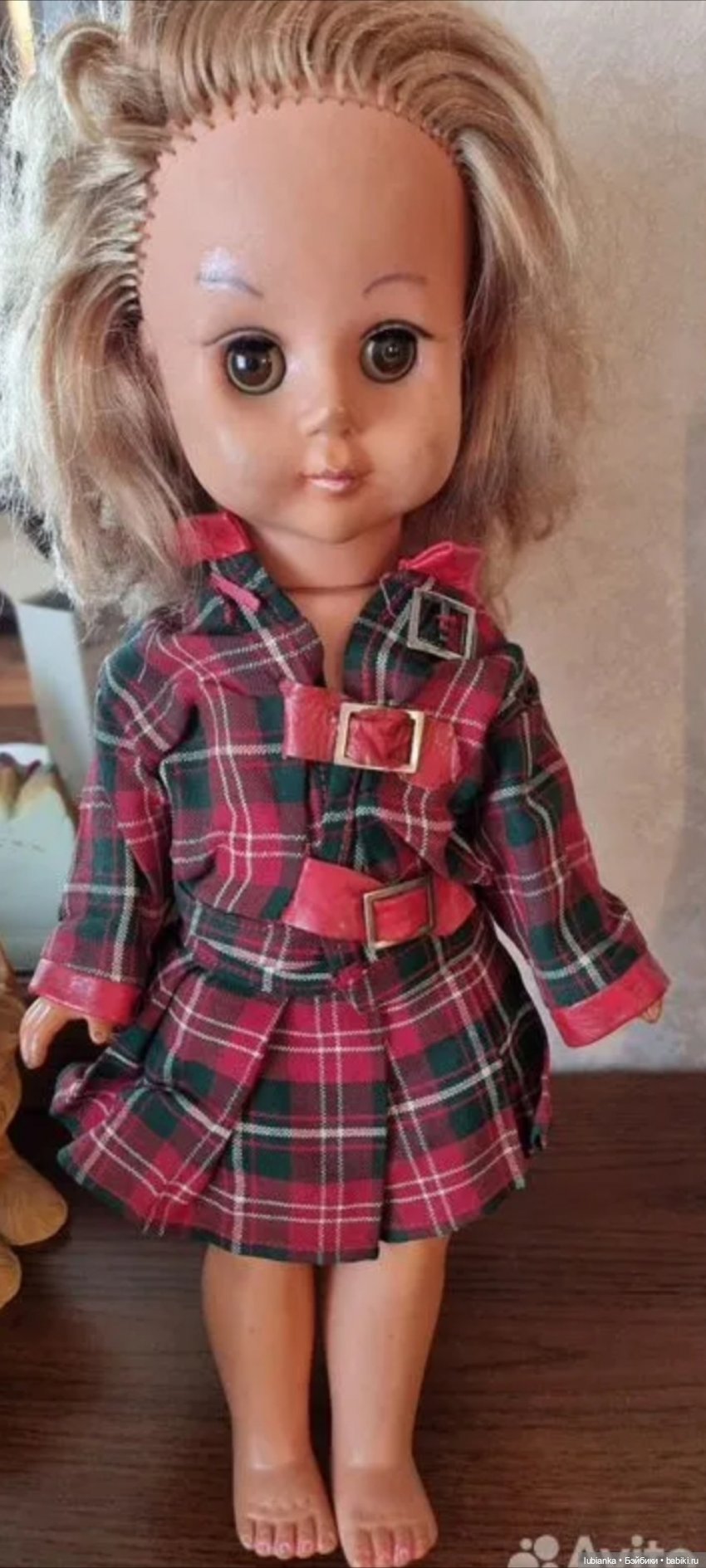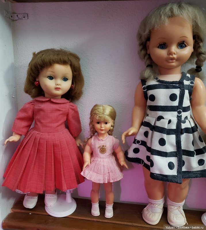 Она малышка-30см.Это модель начала 50х гг, крепление головы на металлическом крючке, характерные большие выпуклые бёдра, да и клеймо раннее