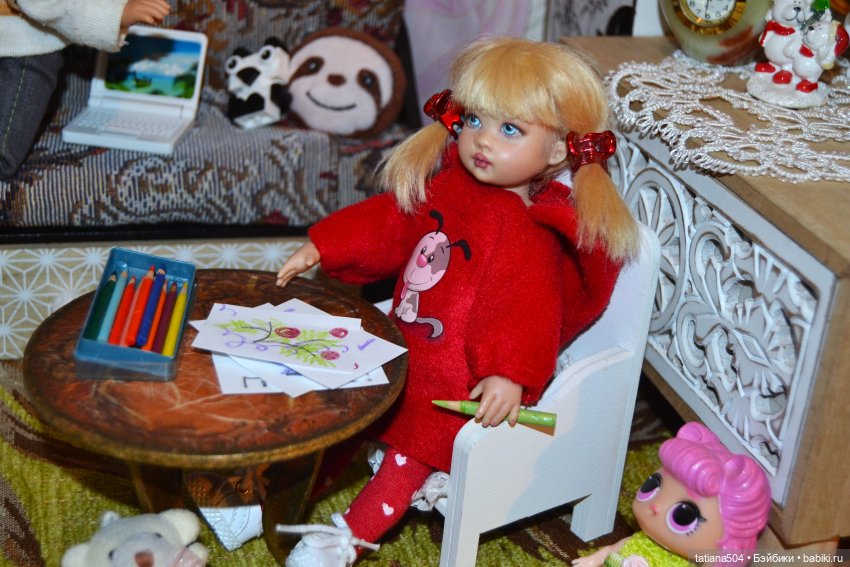 Комната разборная, места для такой нет катастрофически, после съемок удобно сложить и убрать. А мебель самая разная — под кукольный рост, есть еще и та, что в процессе сборки. Если бы отменить работу много чего бы успела!