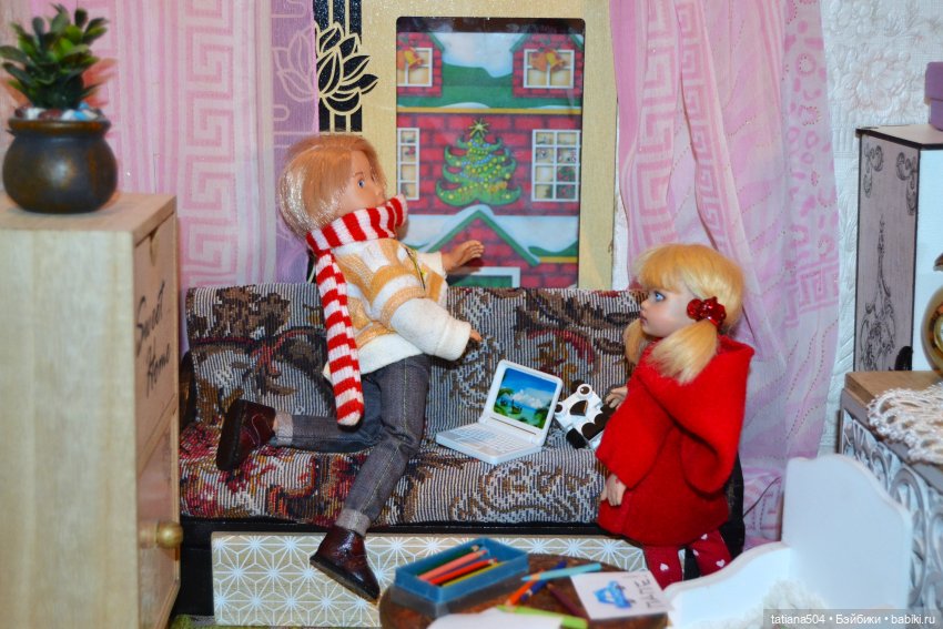 Аришка, поникла, отошла в сторонку и тихо села. Потом подвинула журнальный столик, принесла карандаши и бумагу и решила нарисовать рождественские открытки с пожеланиями.