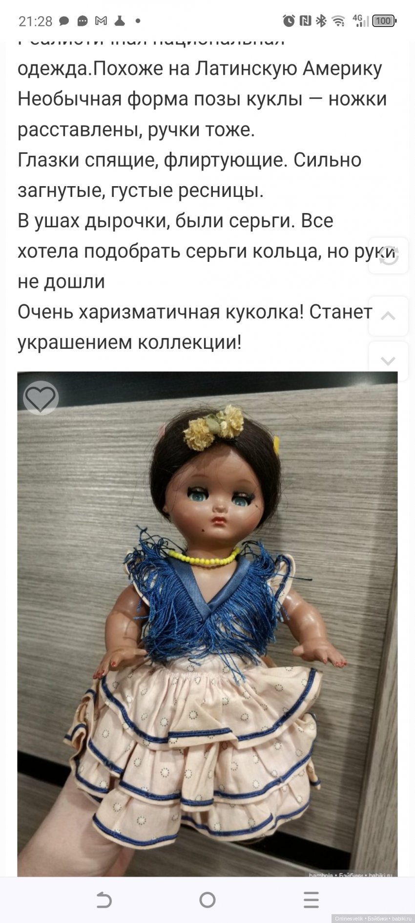 Попробую найти фото. Я сохранила в избранном вроде. Она была в одежде испанки.