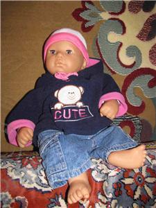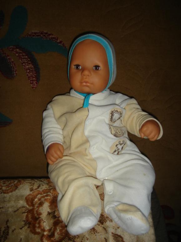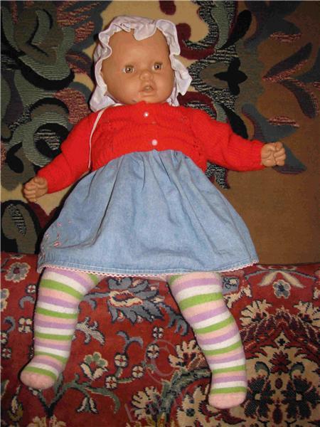 а это тоже немецкий пупс, мы Даринке (старшей дочьке) подарили на годик, зовут ее Катя. Правда наполнение тела я поменяла на паралон, так как она была очень тяжелая и дочька не могла ее носить
