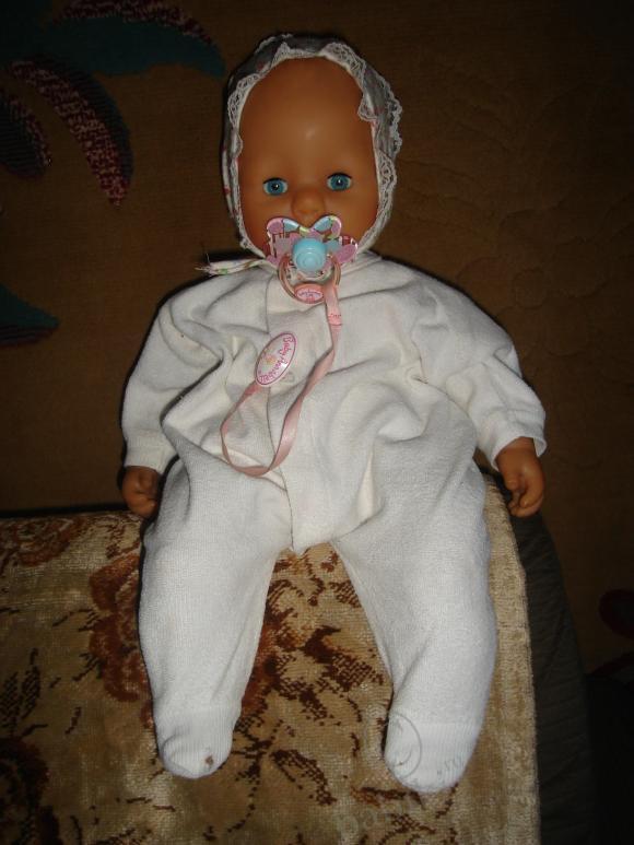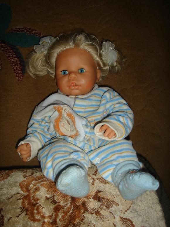 а это анабелька первой версии, хоть она и простенькая, но дочьки ее очень любят. Она плачет, смеется, сосет соску, но ничего не двигается.