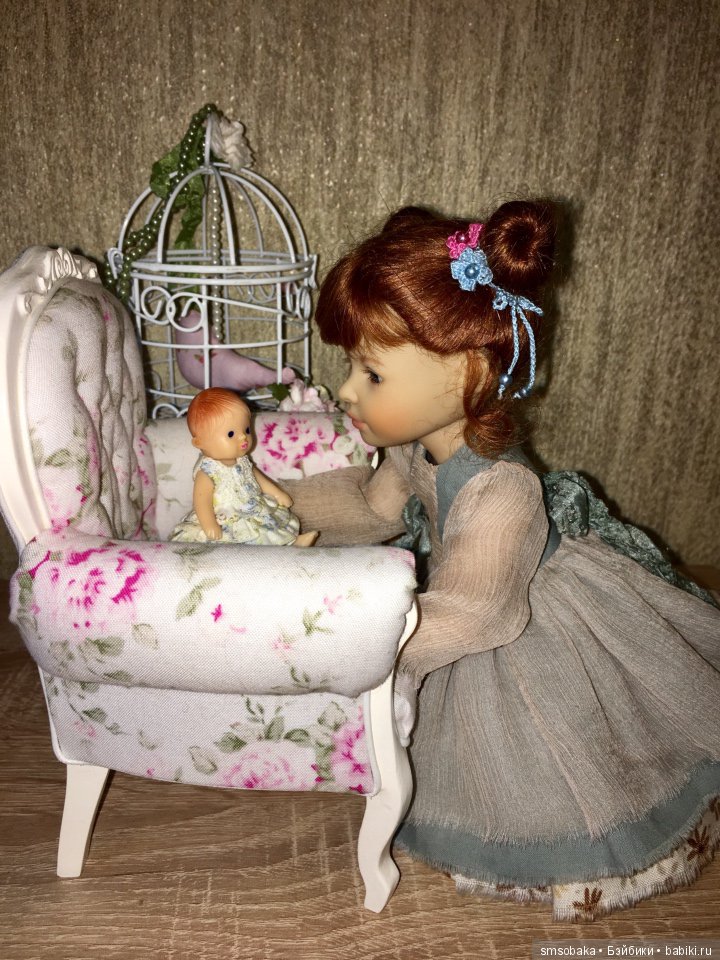 — мне, волею случая, удалось найти маленького резинового пупсика, подобного тому, с которым я в детстве играла днями напролёт, придумывая различные истории, изобретая мебель, всевозможные наряды и прочее… пупсика мы нарядили в коротенькое платьице с шортиками и получилась отличная маленькая куколка для Зои;
