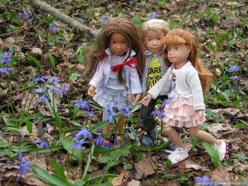 Непонятная у нас весна выдалась.День солнце яркое и температура +25, другой хмурый, облачный, с холодным ветром, вот и приходится одеваться потеплее, никак теплую одежду убирать нельзя.Вот и сегодня решили фотосессию устроить, думали солнышко будет, ан нет… холодно. Ну раз решили фотосессию, значит не будем откладывать.Нет плохой погоды, оделись потеплее и пошли гулять.В съемках участвовали куклы Вера и Миша Крузелинги и плюшечка Сейран.У нас они Варя и Игореша, и Владочка.Помогали мне мой внучок Артемка и наш домашний друг и охранник пес Норд.Детки поиграли в песочнице, покатались на горке, самосвале и даже на аисте и ежике.Погуляли среди первых цветов, правда, это были какие то цветочные деревья по росту с нашими крохами.Норд очень интересовался чем же это мы заняты, и что это за мелочь какая то непонятная, жутко мешался и лез своим носом понюхать, чтобы разобраться.Артем помогал мне, пытался посыпать малышей песочком, зато великодушно разрешил покататься на своем самосвале.Прогулка удалась.Будем ждать теплых денечков для другой фотосессии.