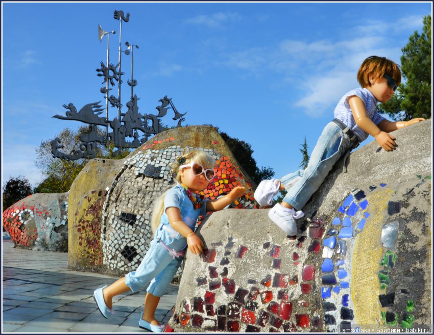 И третий, завершающий топик о том, как проводили время маленькие коллекционные куклы Heidi Plusczok в санатории в Сочи. Как же там красиво и тепло, в конце апреля и начале мая — настоящая летняя погода! Дома не усидеть, дети всё свободное время бегали на свежем воздухе, катались на велосипедах и скейтбордах, лазали по деревьям. В общем, ребятня времени зря не теряла!