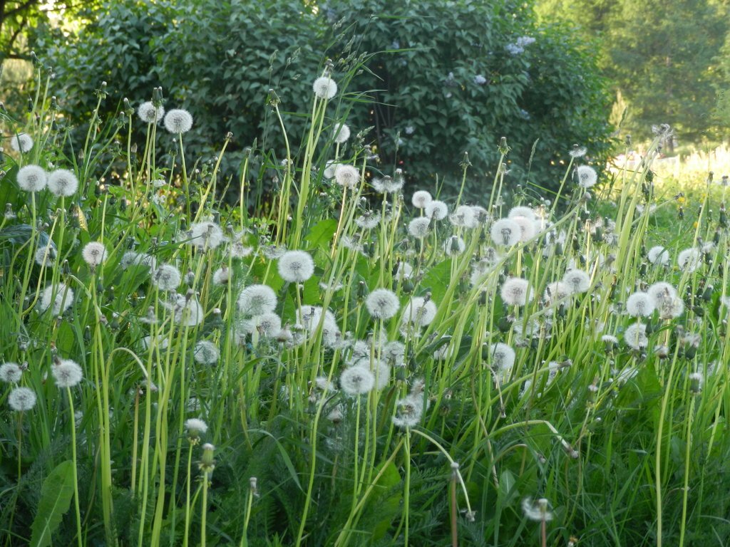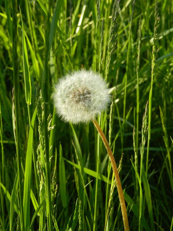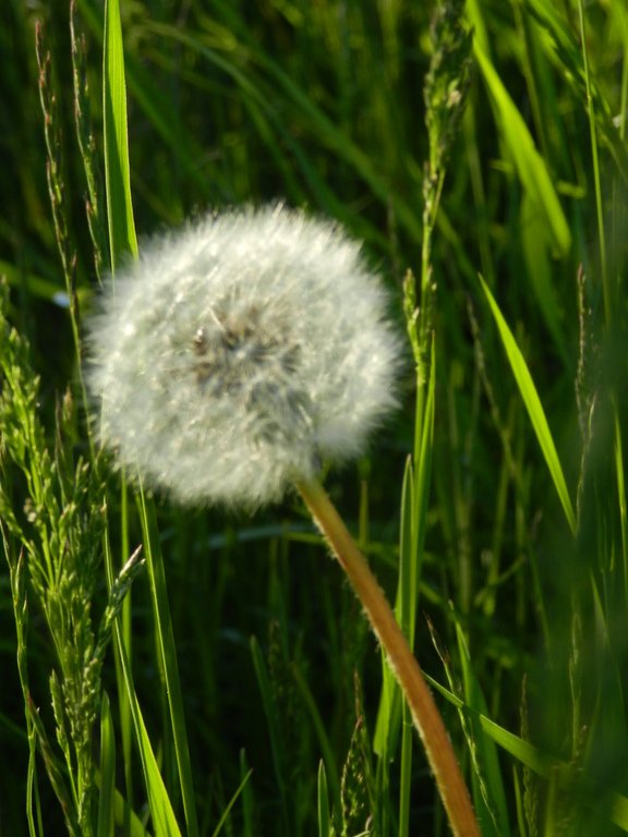 Пошли искать, где травка ещё не скошена, зелёная, цветут цветочки, а одуванчики превратились в белые, воздушные шарики:)…