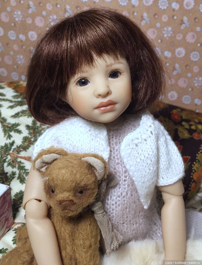 Сегодня я хочу познакомить вас с ещё одной коллекционной куклой Heidi Plusczok, маленькой девочкой Триш. Приехав, она назвалась Майей. У меня уже была малышка с этим молдом, Диночка, и она так мне нравится, что я не удержалась, купила ей сестричку- двойняшку. У Майи волосы не чёрные, а каштановые и вместо косичек — красивое каре. Малышка приехала со своей собачкой. Девочка прелестна! Смотрите сами.