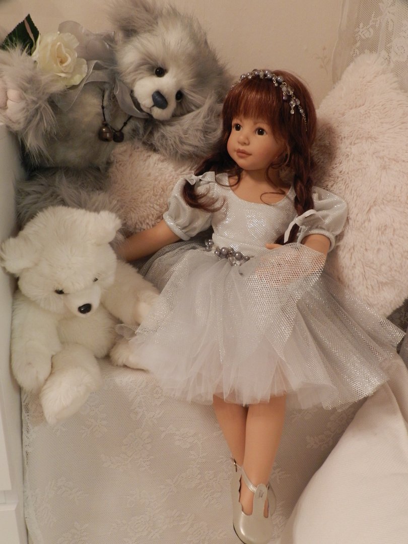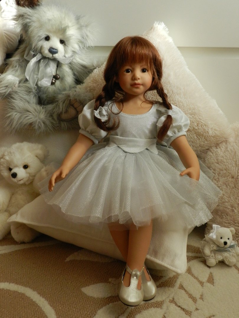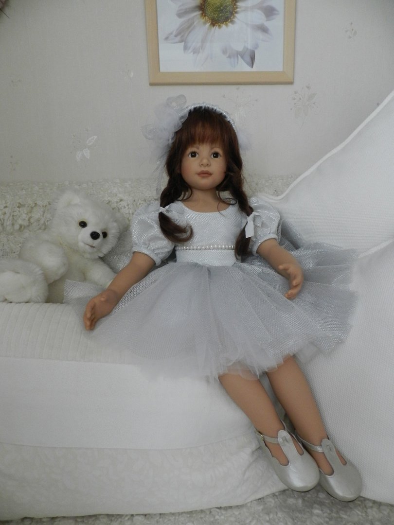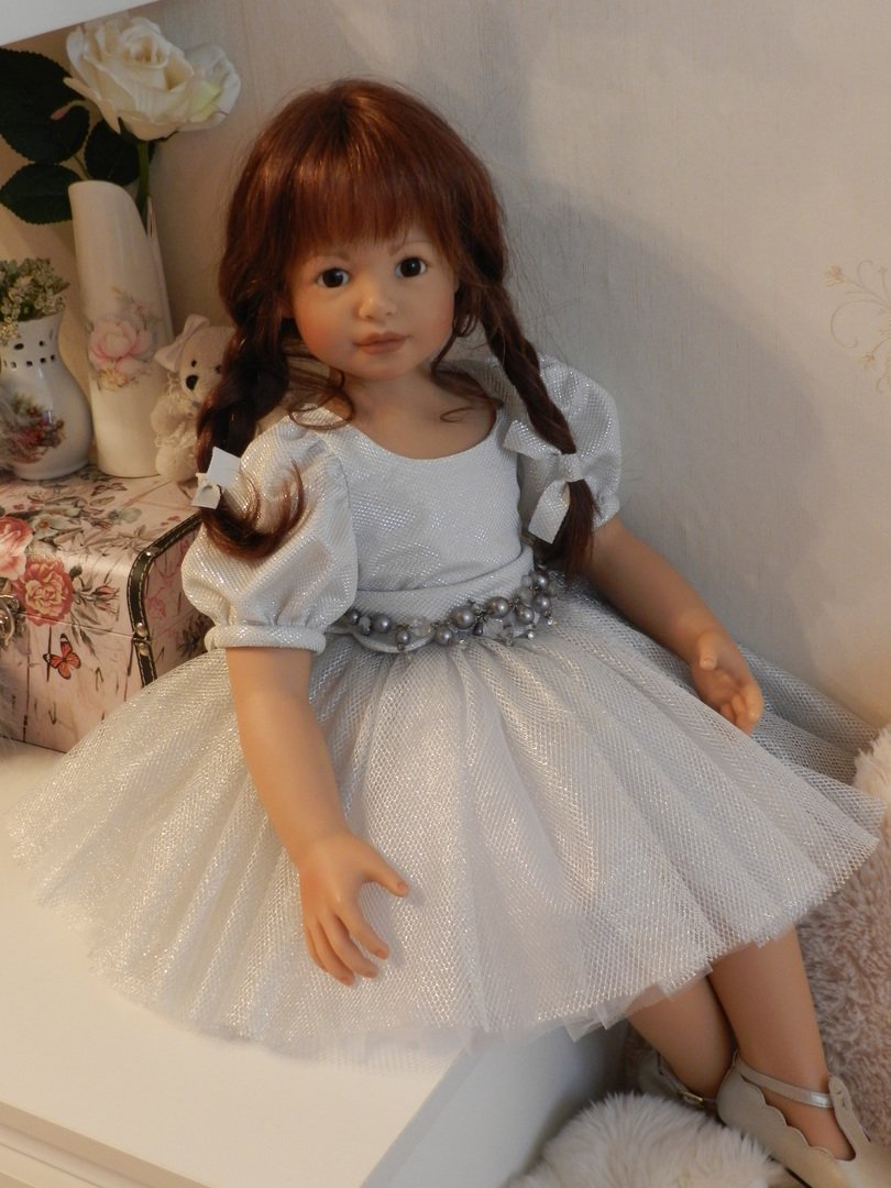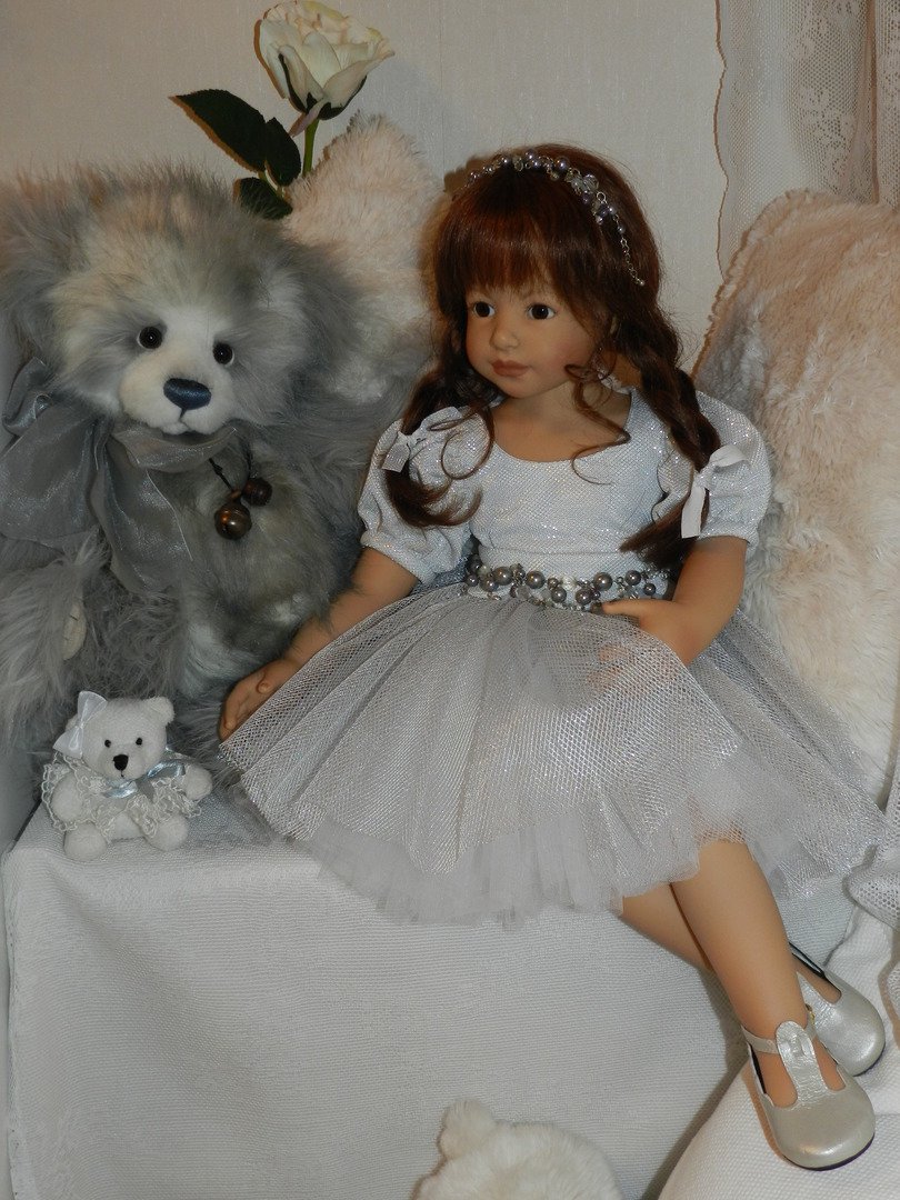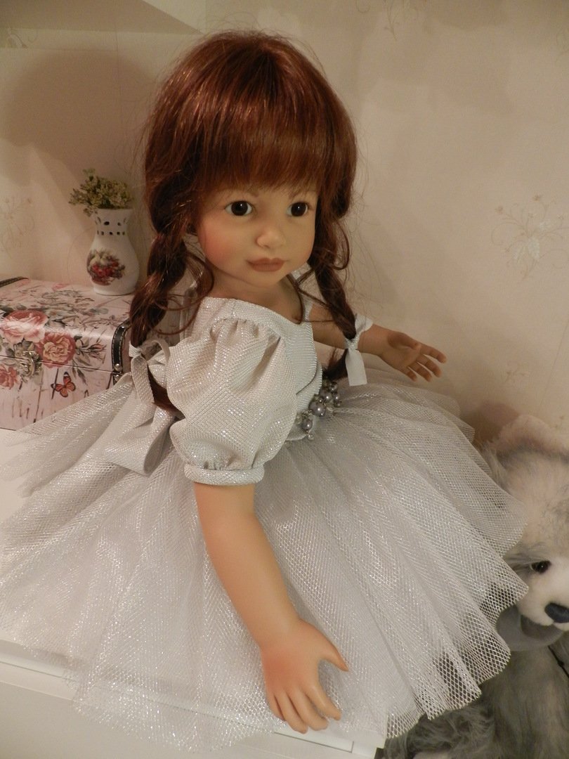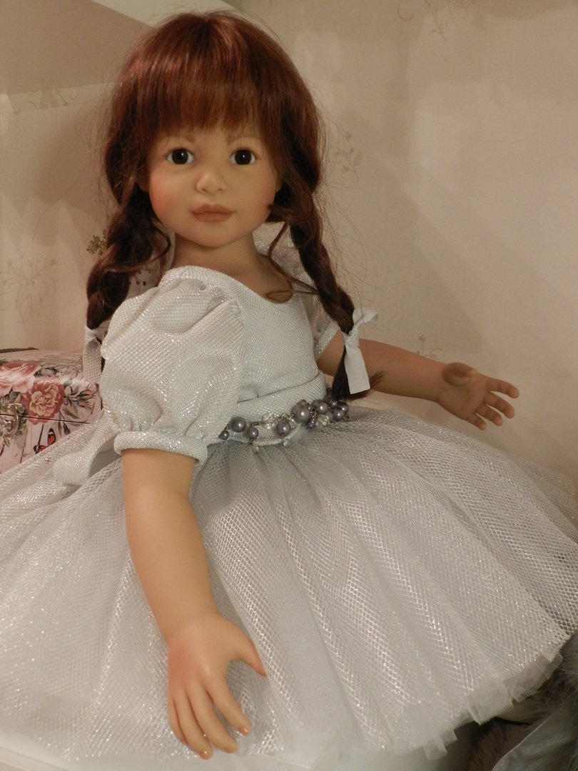 Катюшка очень давно, терпеливо ждала, когда же до неё дойдут мамины руки:)И вот, свершилось! И Катюша рада показаться во всей красе:)Из маминого ателье она получила серебряное платье, нежное, воздушное, оттеняющее красоту Катерины…