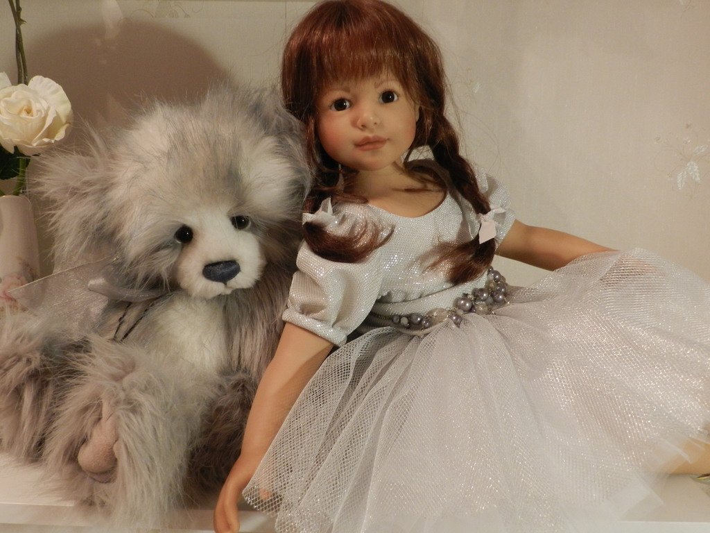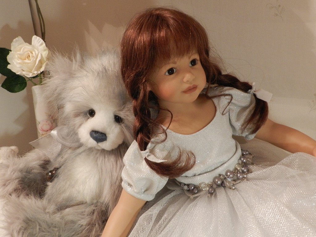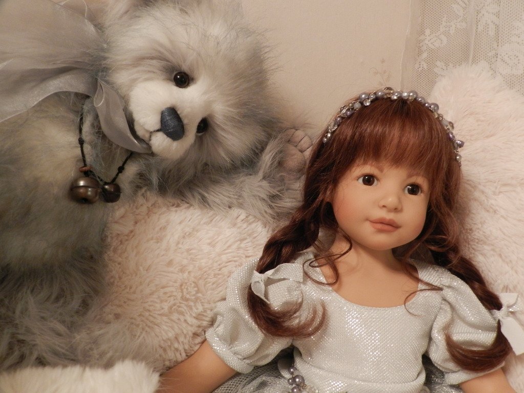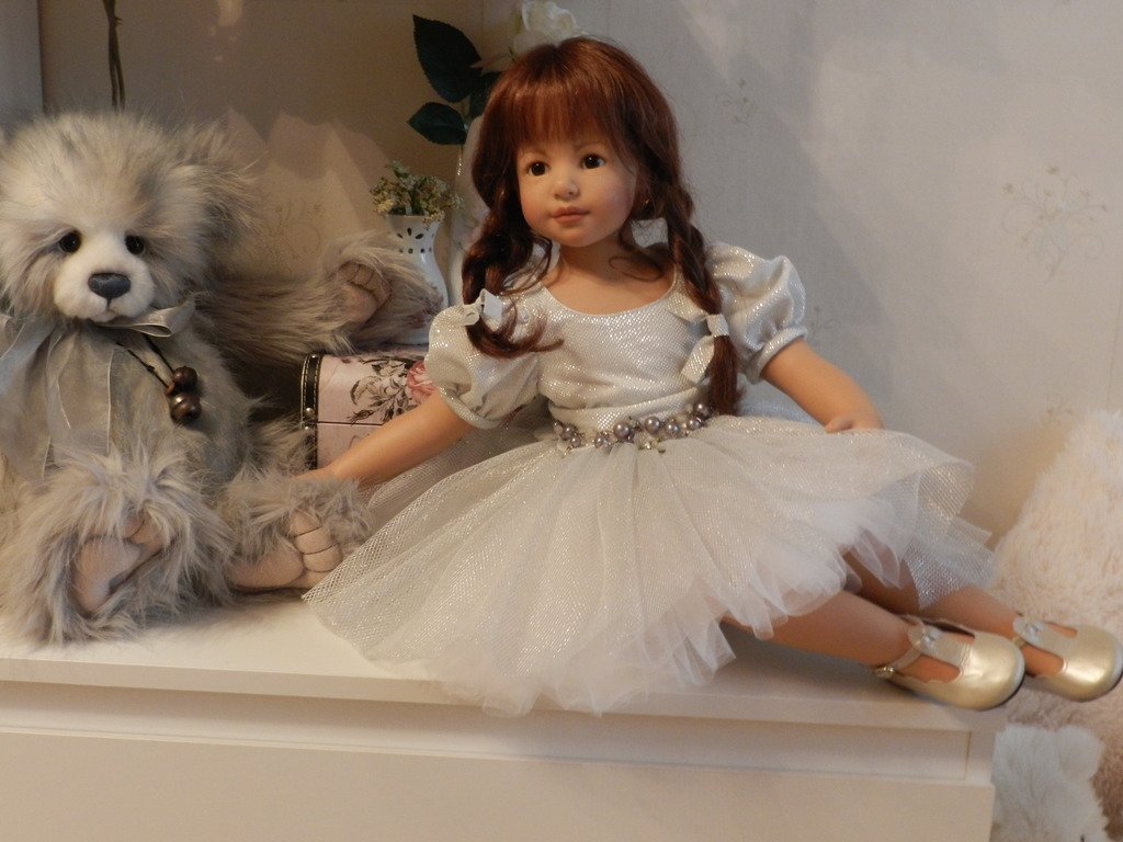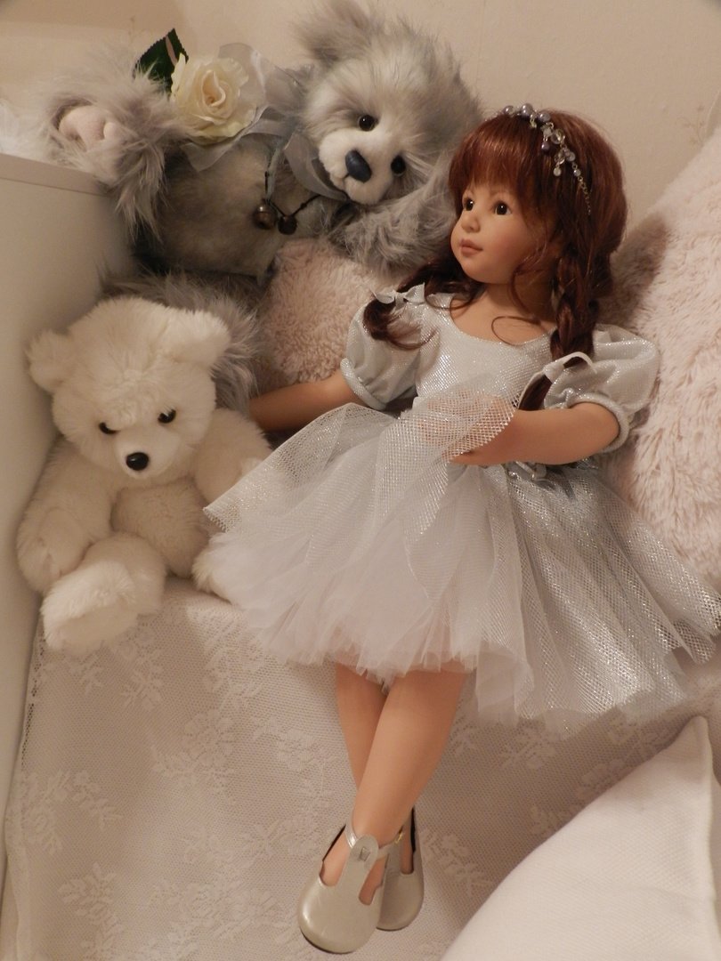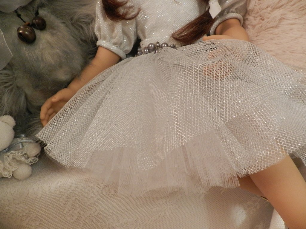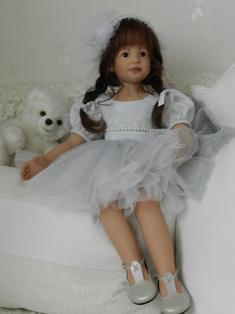 Катюшка очень давно, терпеливо ждала, когда же до неё дойдут мамины руки:)И вот, свершилось! И Катюша рада показаться во всей красе:)Из маминого ателье она получила серебряное платье, нежное, воздушное, оттеняющее красоту Катерины…