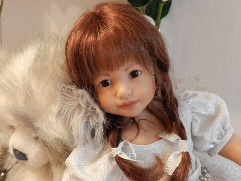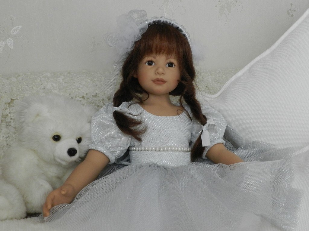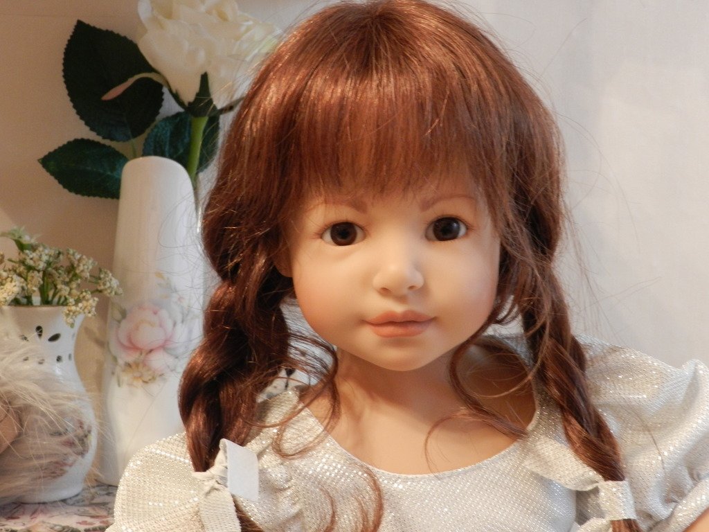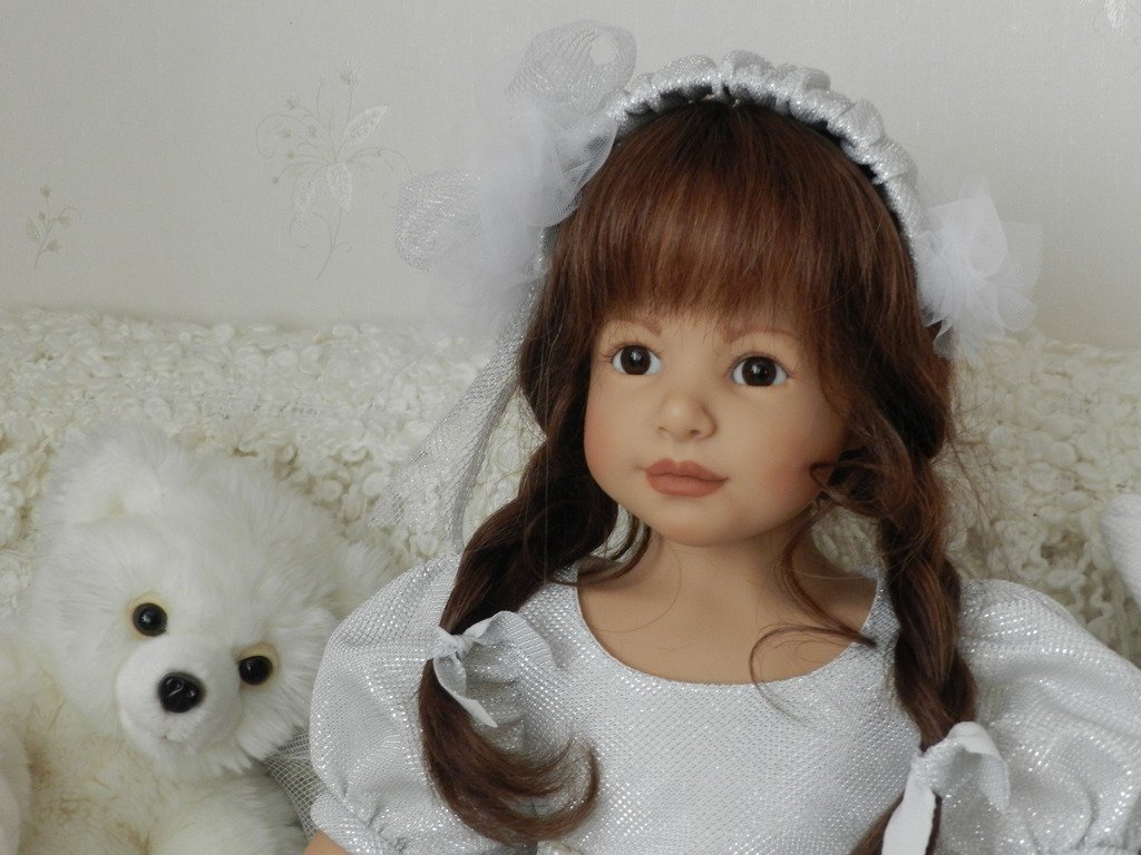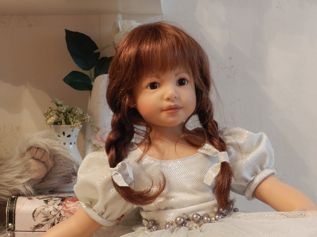 Катюша создана фрау Хайди для ZAPF в 2003 году, таких девочек 500 по всему миру.Рост у Катюши 69 см, она сидит, в теле каркас.Глазки карие — стекло, волосы паричком -натуральные, выразительные губки, обворожительная девочка!