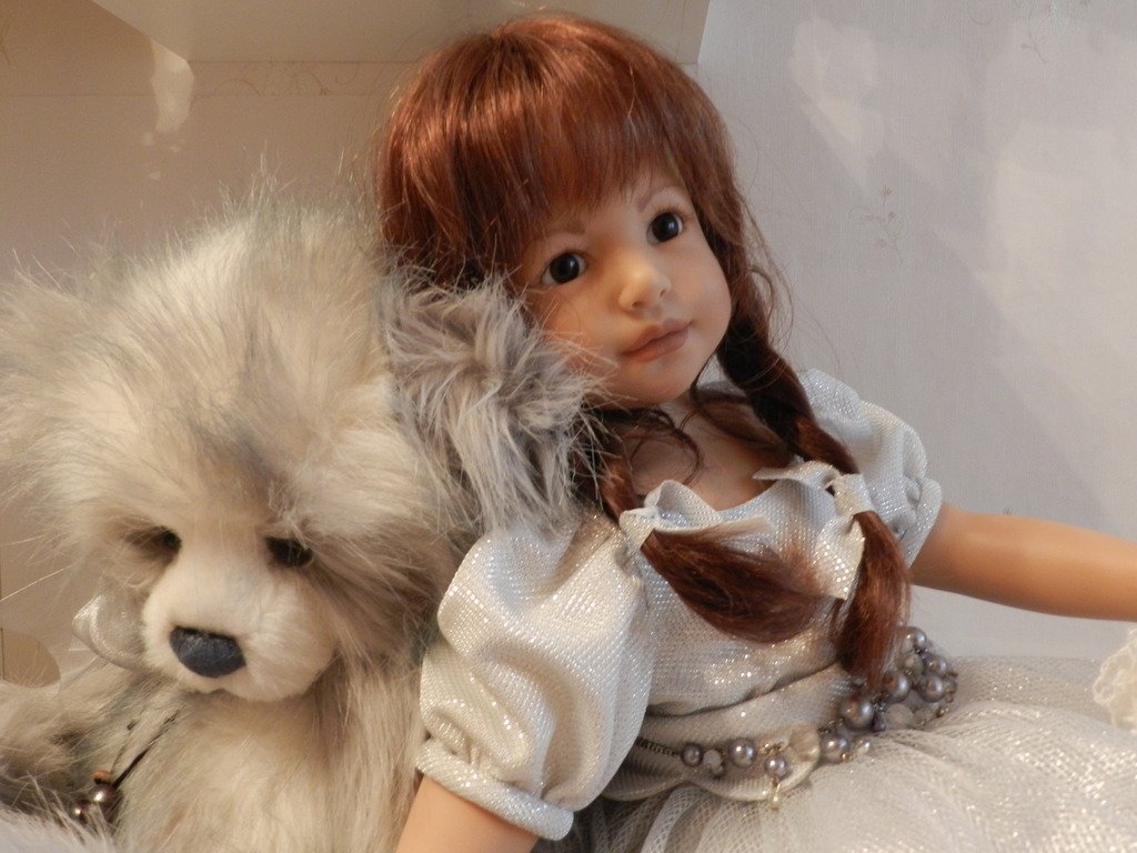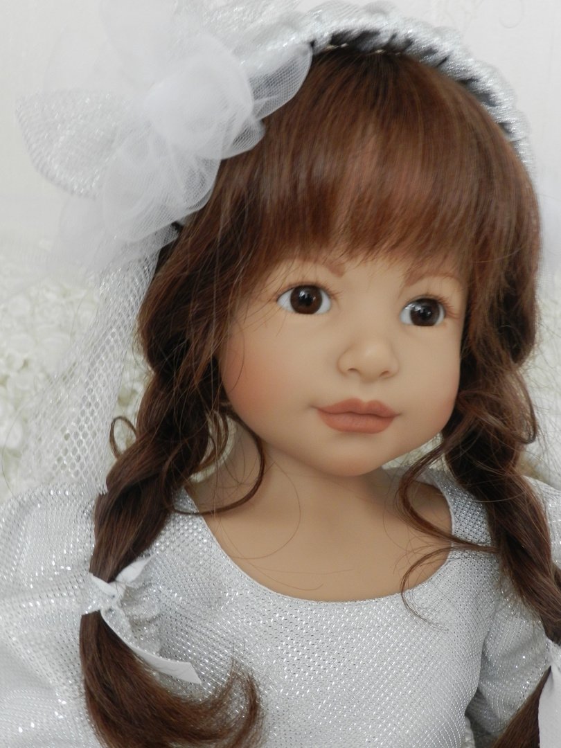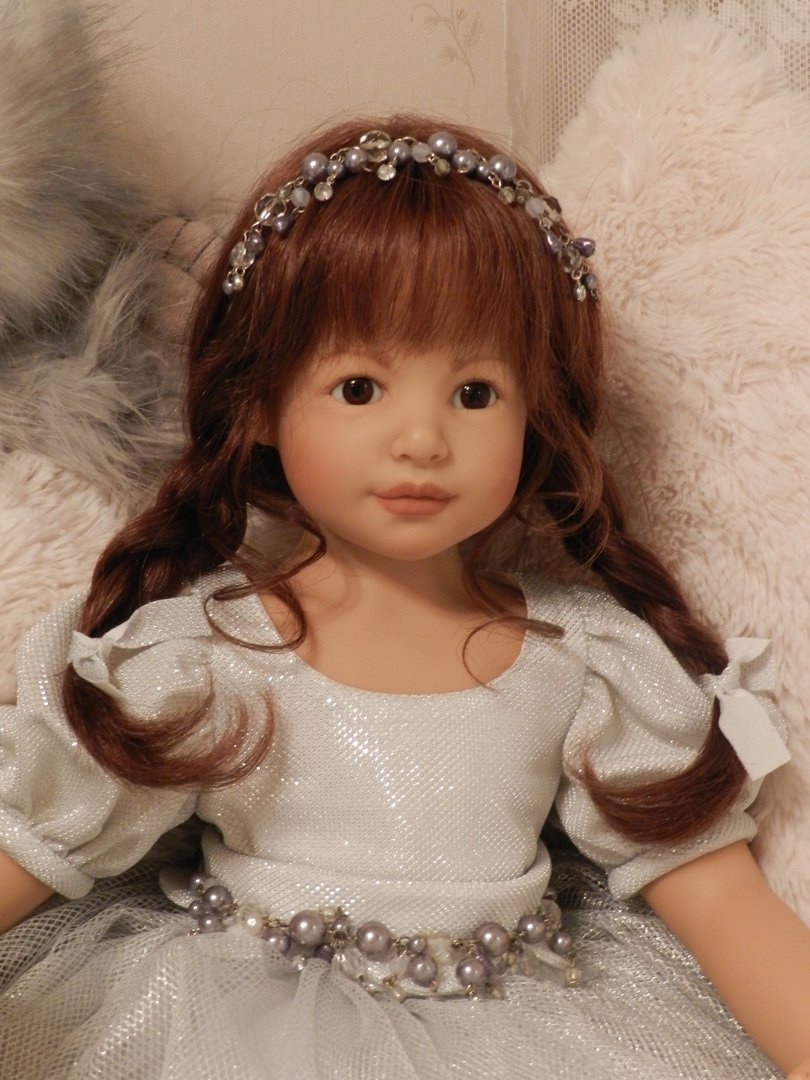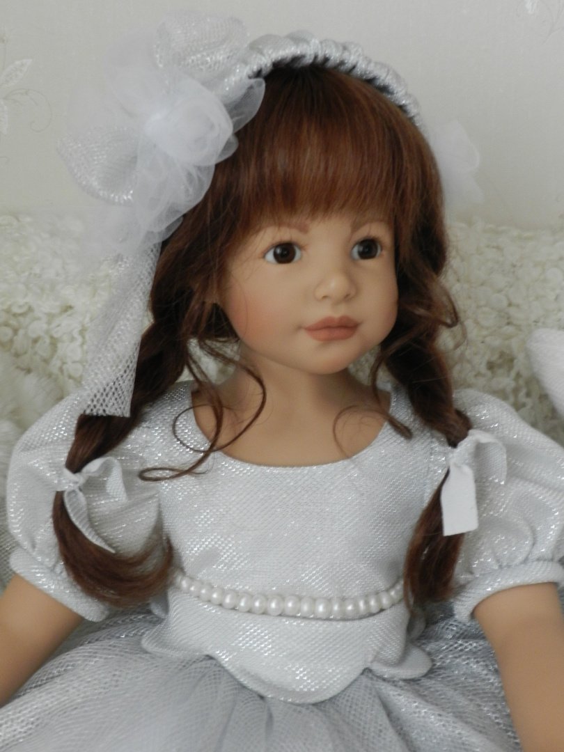 Катюша создана фрау Хайди для ZAPF в 2003 году, таких девочек 500 по всему миру.Рост у Катюши 69 см, она сидит, в теле каркас.Глазки карие — стекло, волосы паричком -натуральные, выразительные губки, обворожительная девочка!