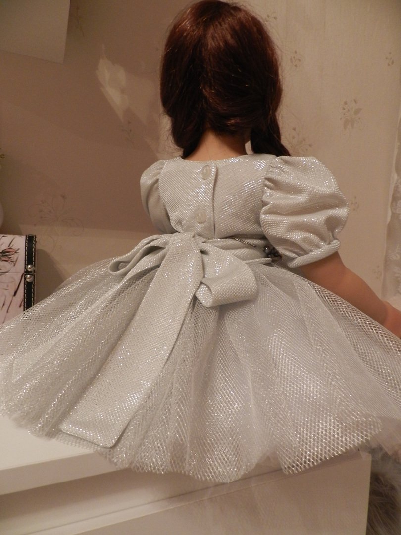 Чудесное, сияющее, серебристое платьице! Тебе пора уже заказы брать в твоем кукольном ателье! Чур, я первая в очереди! ))
