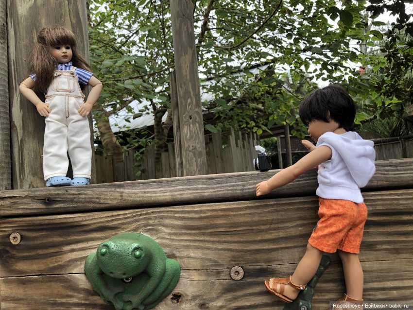 В воскресенье Никитка решил поехать с нами в лес, посмотреть, как там, когда уже можно будет туда прогуляться всей детсадовской группой. Чтобы не скучать, пригласил с собой Полинку и Тамару, коллекционных кукол Heidi Plusczok. Там же дети решили опробовать свой новый фотоаппарат.