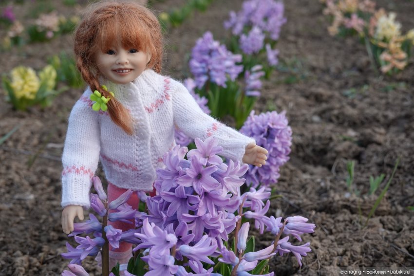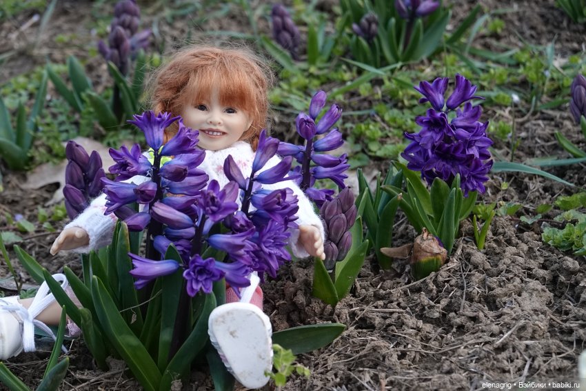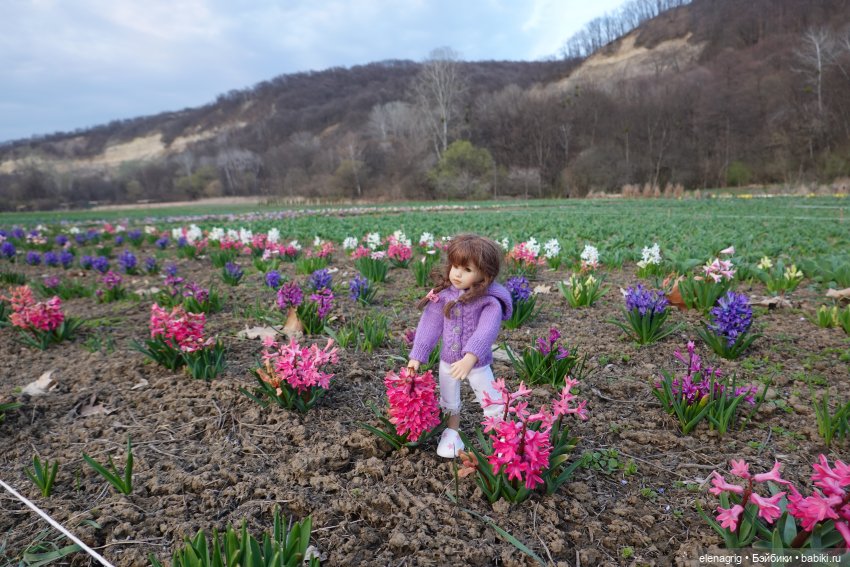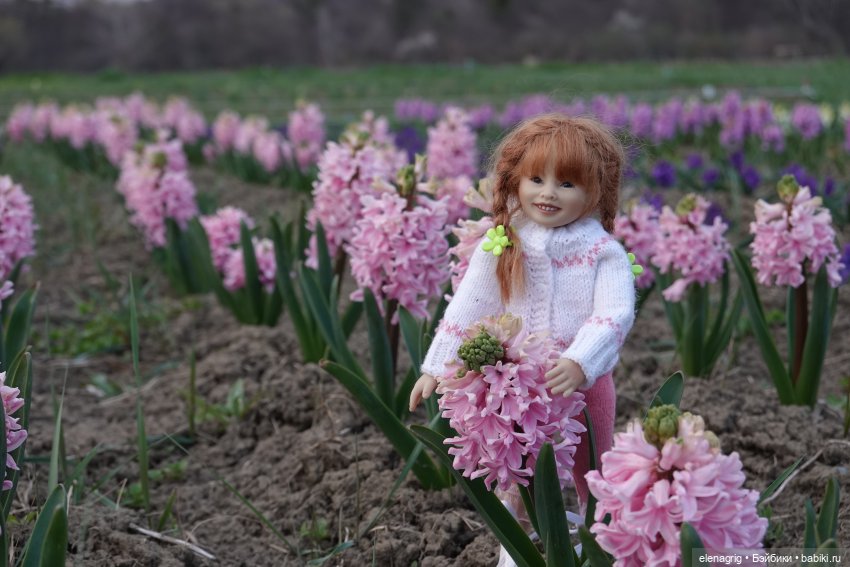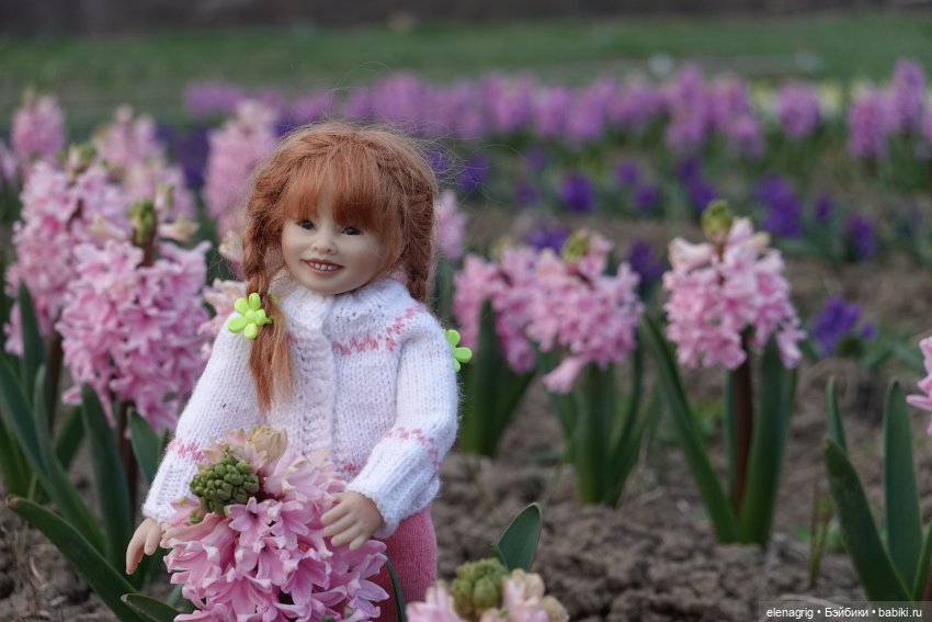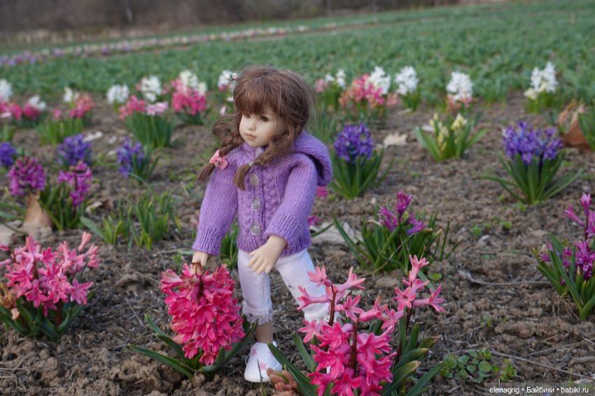 Сегодня мы с коллекционными куклами Heidi Plusczok ездили в нашу цветочную долину. Это место, где высаживают множество цветов и люди гуляют, любуясь этой красотой. Сейчас там цветут гиацинты и нарциссы. Я никогда ещё не видела такого количества цветущих гиацинтов, поверьте, зрелище потрясающее! А запах! Мы как будто в сказку попали! Смотрите сами, жаль, аромат нельзя через экран передать.
