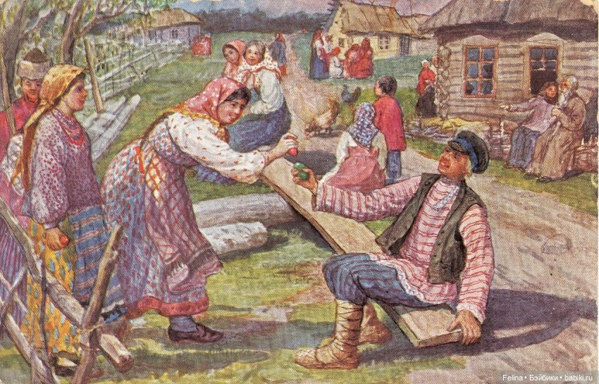 Во вторник начинались основные пасхальные гуляния – катания на качелях, а так же хороводы и вечерние посиделки.