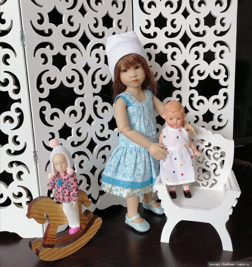 Покупать кукол этого автора не планировала по трём причинам. Во-первых, очень дорогое удовольствие. Во-вторых, не очень нравились. В третьих, уже был план купить Бонеку и уже куплена Энн Эстель такого же роста. Думала, что кукол близких по размеру, мне достаточно. Но однажды мне задали вопрос о том, не шью ли ля для малышек Хейди Плюсцок? Мысль посеяна, засела… :-)))