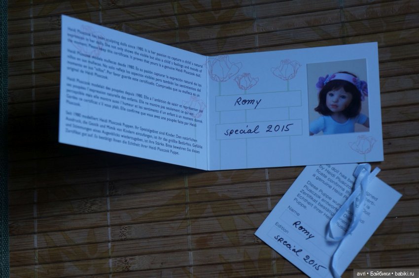 Нашла паспорт своей Роми 2015 год. Может Роми в 2014 году планировалась быть выпущенной в единственном экземпляре? А в 2015 году решили еще партию удачной куколки выдать. И уже не пишут об одном экземпляре…