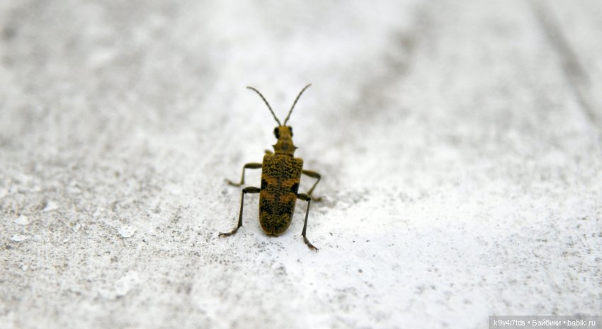 Пока фотографировала в зарослях дятла, Аксюшей заинтересовался большой жук. Долго сидел и смотрел на Аксинью. Действительно, как в сказке «Дюймовочка» :)