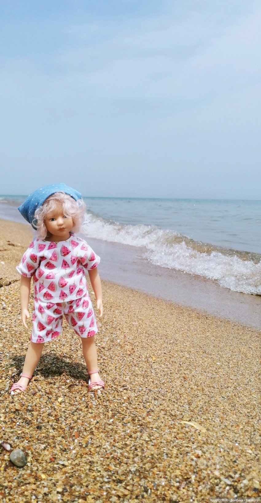 Ну а для путешествий у меня другая куколка — Мягкая Попка, малышка с тканевыми вставками, нарисованными глазками, молд Патси. Она утратила коллекционную ценность, продавалась без паричка и аутфита, собственно, коллекционеров не очень интересовала. И брала я её именно как подружку в путешествиях. И очень дорожу ею. При съёмке тот же принцип — безопасность. Если море, то далеко от кромки воды, если скалы, то подальше от обрыва, за камнями или другой опорой, чтобы ветер не сбил. И обязательно просчитываешь, куда может упасть, если что… Теперь без этой подруги путешествие не в радость…