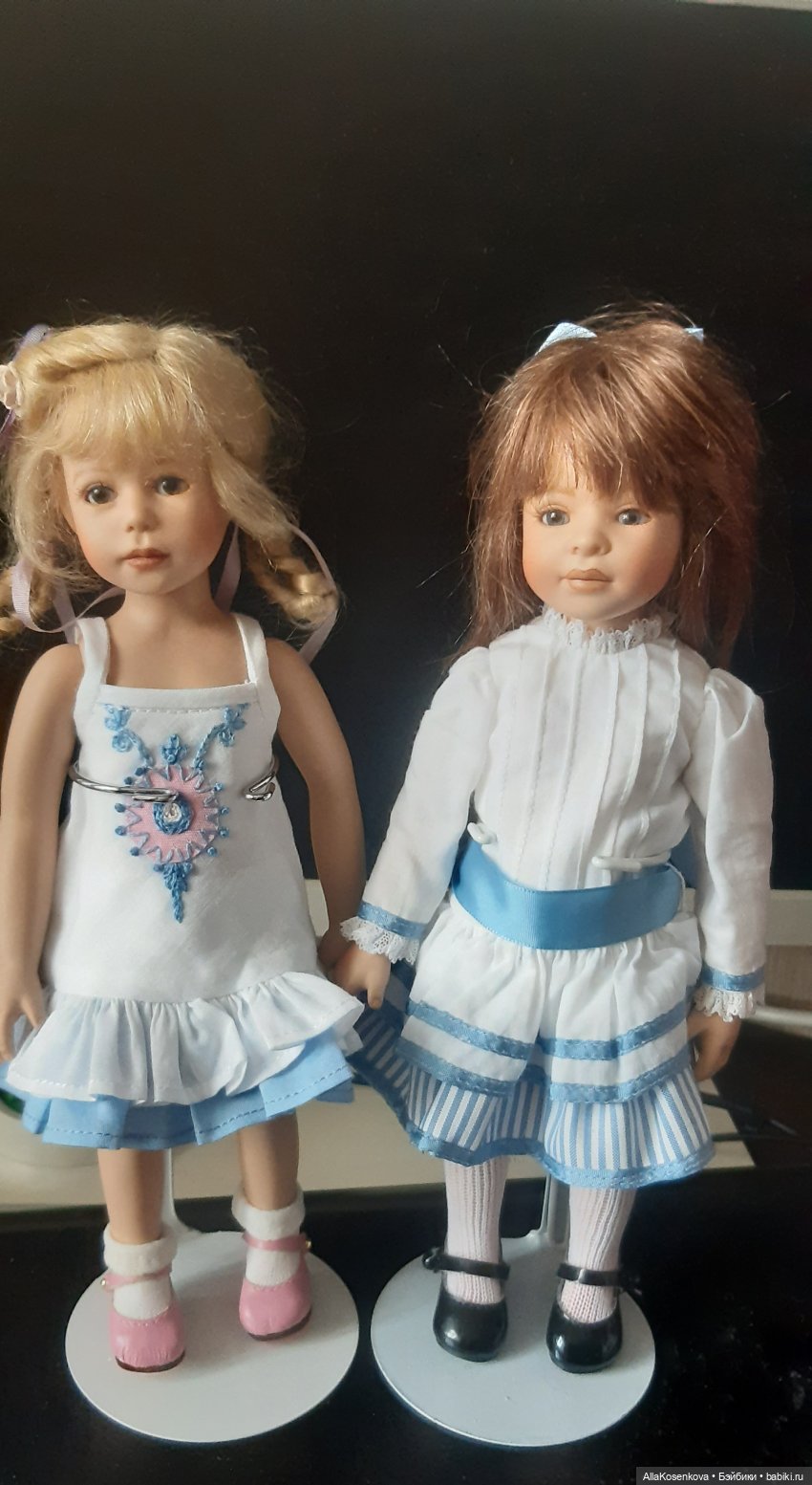 у меня живут две фарфоровые малышки-прекрасная Бабетта и принцесса Сара-она на фото, где девочки вдвоём, та, что пониже да поближе))). Сара-для меня самая-самая. До сих пор не сделала ей персональную фотосессию, как нибудь сотворим.)