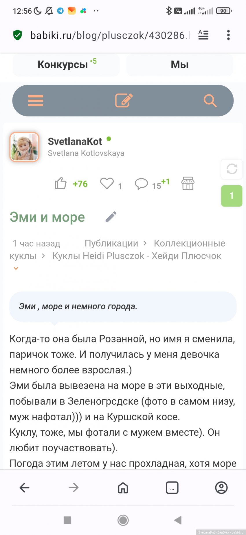 Когда-то она была Розанной, но имя я сменила, паричок тоже. И получилась у меня девочка немного более взрослая.) Эми была вывезена на море в эти выходные, побывали в Зеленогрсдске (фото в самом низу, муж нафотал))) и на Куршской косе.