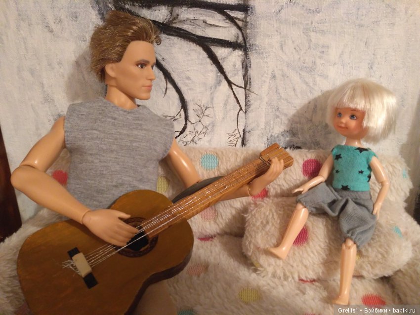 Я не успела ещё нашить одежды, занята взрослым верхним гардеробом. Пока отобрали у реалика. А руки так и чешутся одеть малыша) Ну и вы в курсе моей гибридизации) Мальчишка приобщается к музыке.