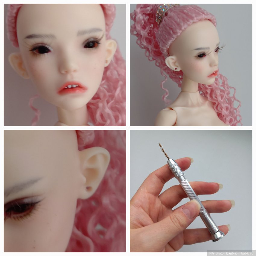 Это очень элементарная процедура, я лично прокалываю сама всем своим куклам, занятия на пять минут! И всё, что нужно — тонкое ручное сверло и аккуратность!