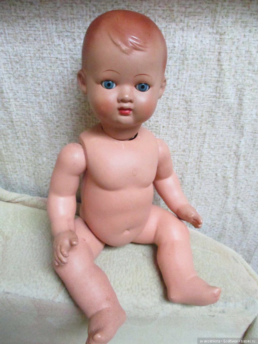 Хочу поделиться своим новым кукложителем, Итальянским пупсом Ratti 1964 года с клеймом. Итальянская компания Ratti закрылась в 1969 году, точнее ее поглотила небезызвестная американская компания Mattel. Отдельное спасибо за него Елене — замечательному человеку и продавцу. Куколка ко мне приехала, очаровав с первого взгляда) Но, всё-таки малышу 54 года, и, соответственно, присутствовали некоторые следы времени — в районе глазок — ржавчина и отсутствие ресничек на одном глазе, пятнышки на ладошках, и ещё некоторые незначительные недостатки. Пятнышки успешно смазала базироном, и отправила на летнее солнышко, а головку решила «лечить» отдельно) Очень не хотелось доставать глазки, всё-таки всегда существует риск повреждения винила, но, всю ржавчину вымыть так и не удалось, к тому же и реснички вставлять легче непосредственно в глазницу, так что пришлось нагреть головушку и вытащить глаза. Винил оказался довольно жестким, и, даже хорошо разогретый, никак мне не давал выдавить глазки. Но, дело сделано! Глазки вытащены, капсулы раскрыты и помещены в раствор лимонной кислоты для удаления ржавчины. Рыхлая ржавчина ошмётками падала из капсул, хорошо, что извлекла, а то бы отмыть возможности не было. Там, где желтые пятна все таки остались, аккуратно, оттёрла ватным тампоном, смоченным слабым раствором COSMOFENа. В глазной капсуле оказались и родные ресницы со второго глаза, из-за чего было проще, изготовить максимально приближённые к «родным» ресницы.