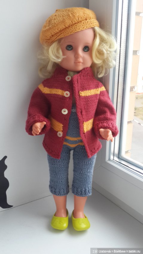 Вроде, все цело. Даже волосы довольно хорошие. Рост примерно 42 см.