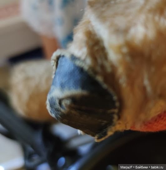 За год дружеских игр набивка немного просела и придётся ее поменять. Ухо пришито, на носу заплаточка. А вот сам нос пока в поиске, несколько покупных пока не удовлетворяют, мелковаты. Задумываюсь, а можно ли восстановить ворс?