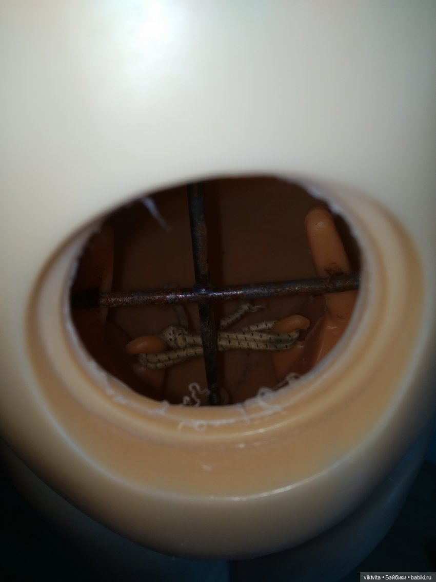 А вот с перетяжкой ног, увы дело застопорилось. Дело в том, что если штыри от ног Нины находятся за металлическим штырем, то кукла заваливается вперед.