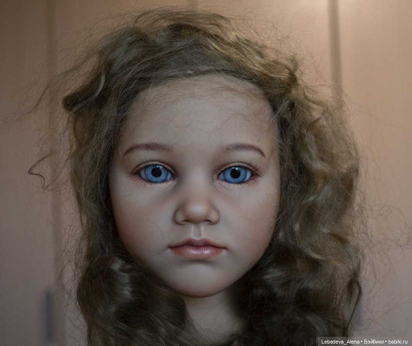 Ну, и мэйк… Нарисовала, потом вклеила закупленные дорогие ленточные реснички, а затем поставила глаза. Глазницы у нее разные, центровала по зрачкам.