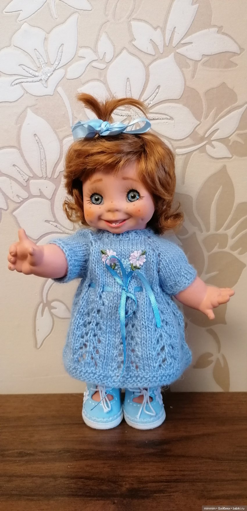 Девчуля получилась очень жизнерадостная, ей все время не сидится на месте, даже пришлось сшить меховой комбез и сапоги, что б гулять то, ну зима же!!! Ещё выяснилось, что она очень любит цветы, и чем больше цветок, тем больше радости))) А ещё она обожает менять причёски! В общем не ребёнок, а сплошное действие! Не смотря что всего 5 точек артикуляции))))