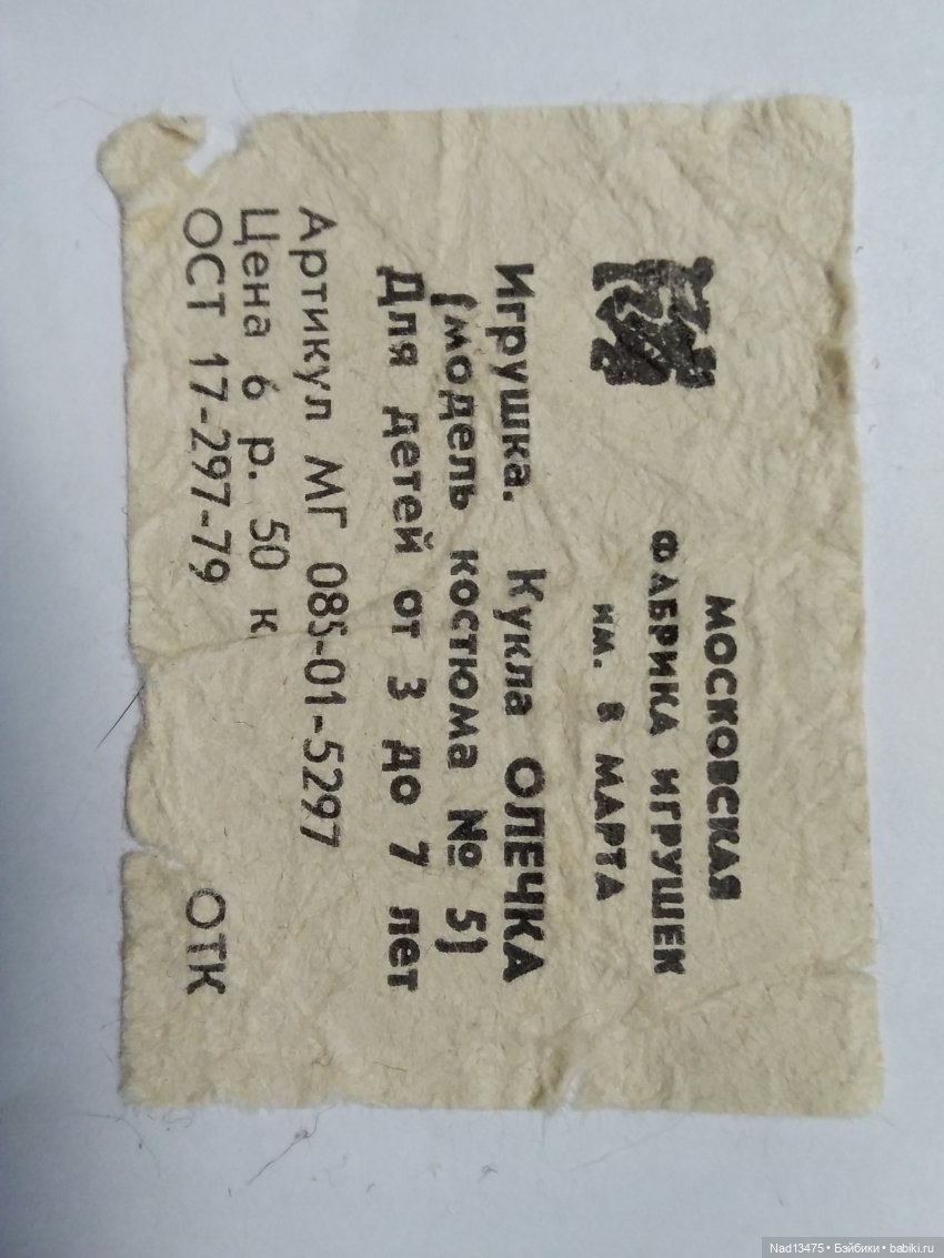 Пока Юле все нравится, ждём теперь портфель, но такой который носили в конце 80х, она же родом из СССР и появилась на свет 1985г.производства. На родном платье осталась этикетка. Сделаю ей паспорт, куда вклею информацию о ней.