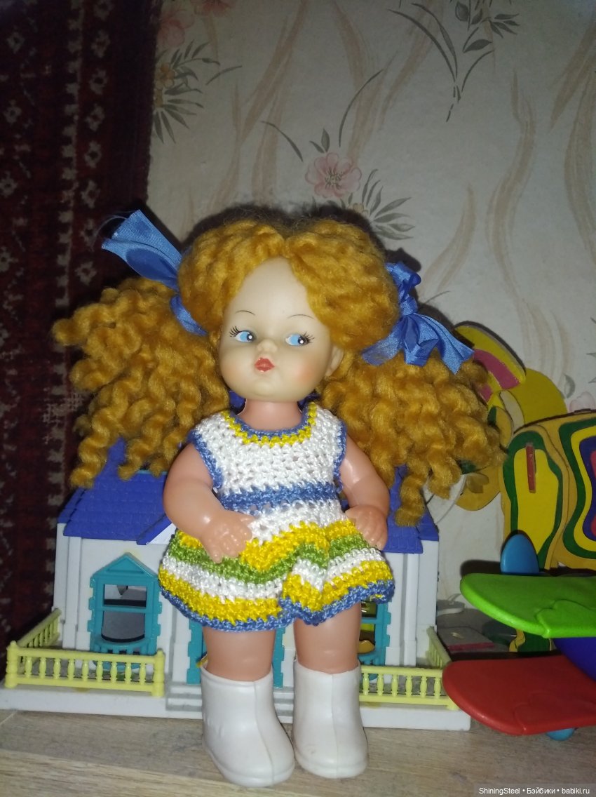 У меня сей час такие пупсики собрались и все со светлыми волосиками. Видимо тёмненькие были редкость, у нас с сестрой была с коричневыми волосиками, такая кудряшка красивая с голубыми глазками — невероятная красота!