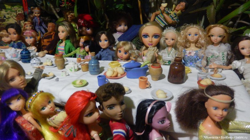 Ага, фотограф таки дозвался всех, и щёлкнул.)) А у нас там настоящие вразмерные печеньки, покупные, но очень вкусные, для ребёнка — снек-вкусняшка, а для кукол — вполне себе выпечка.)