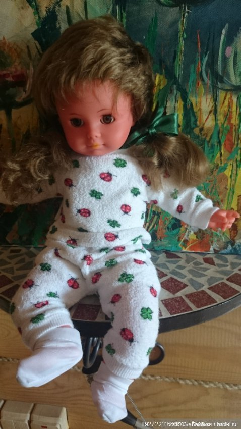 Что ещё сделано. Заменены ручки и ножки на донорские, родные. Ручки пожелтели, поэтому без сожаления девочка согласилась взять другие, подходящие по цвету к телу. А ножки, потому что в детстве маленькая хозяйка заменила их на другие от своей куколки из-за порванного диска. Рада, что через столько лет куколка опять приобрела свои, родные ножки и стала опять своего роста.