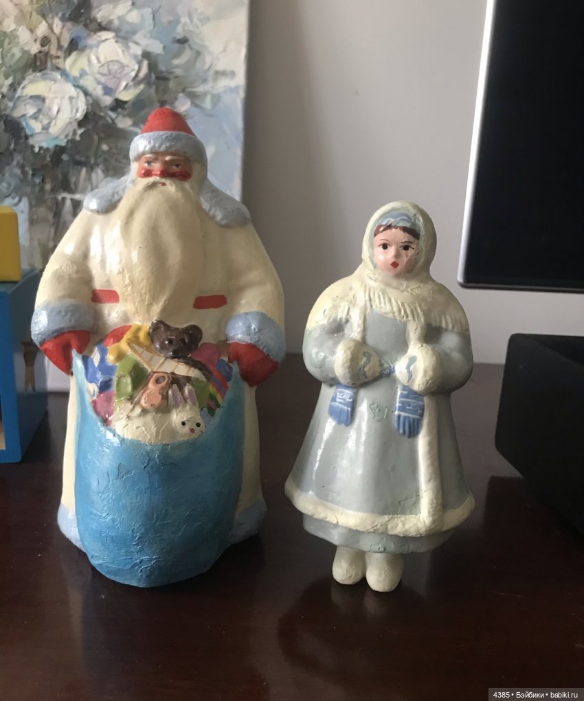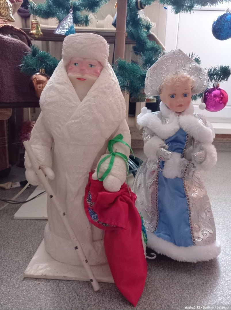 Здравствуйте, жители сказочной страны! Рада приветствовать вас в своём топике. Скоро новый год и подготовка к нему идёт полным ходом. Мечтала я поселить у себя советского Деда Мороза и Снегурочку. И вот они поселились в моем доме. Дед мороз в хорошем состоянии, а у снегурочки на лбу была ямка и нос немного повреждён, кроме того, краска на шубах стёрлась. Поправить дефекты паяльником побоялась (был весьма печальный опыт работы), поэтому решила их только раскрасить. Раскрашивала акриловыми красками, закрепила акрилом. Вот что у меня получилось! Представляю фото до и после раскрашивания. Приятного просмотра! Фото снегурочки взяла из интернета, так как свою забыла сфотографировать…