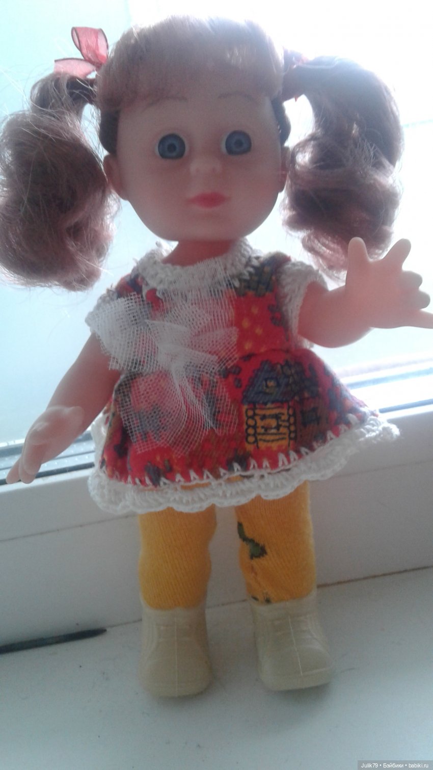 В июле ко мне пришла посылочка от Екатерины katenech, в которой была малышка Ликка, давно её хотела нарядить) тут перебирала одежки и нашла чудесное платьице, которое мне присылала Наташа natalica71