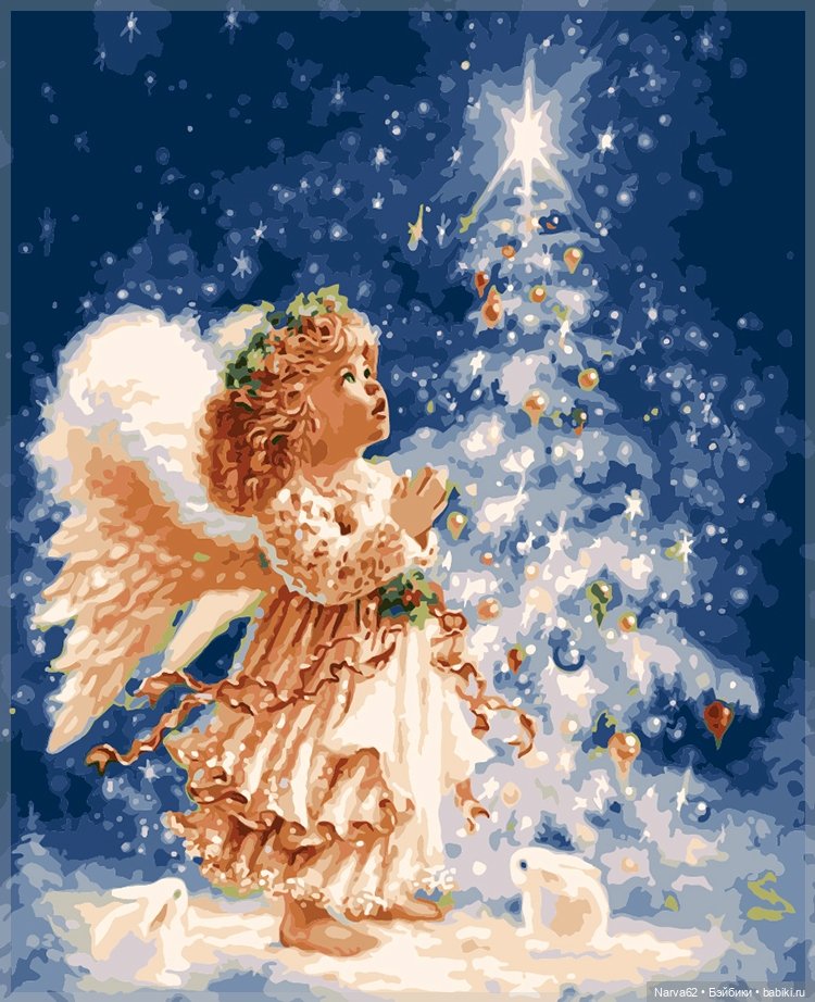 А вот ангелок был в такой белой длинной цельнокройной рубахе в пол, сзади были приклеены крылышки. И по моему ещё что то типа нимба на голове было.