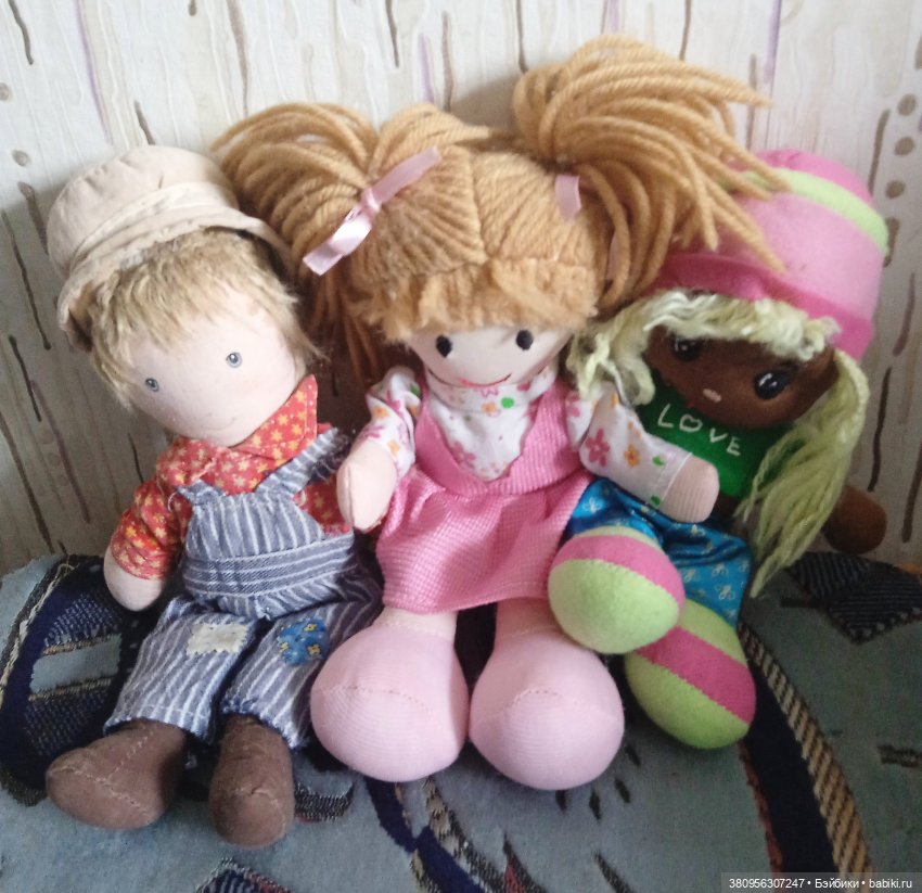 мягкие текстильные куколки: винтажечка Робби брат Холли Хобби Knickerbocker Toy Company США, Верунка Чехия и темнокожая куколка найдёнка, собачки нашли, заштопали погрызы и порваности, выкупали, одели и полюбили.