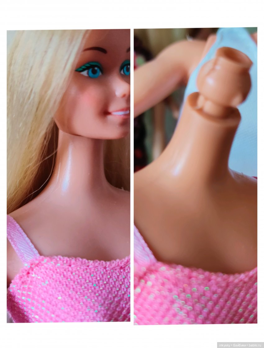 И на этом теле шея кажется ну очень длинной! Или так и должно быть? Посмотрела отверстие в голове — визуально все цело. Ни чего не срезано. Надпись по кругу Маттел.