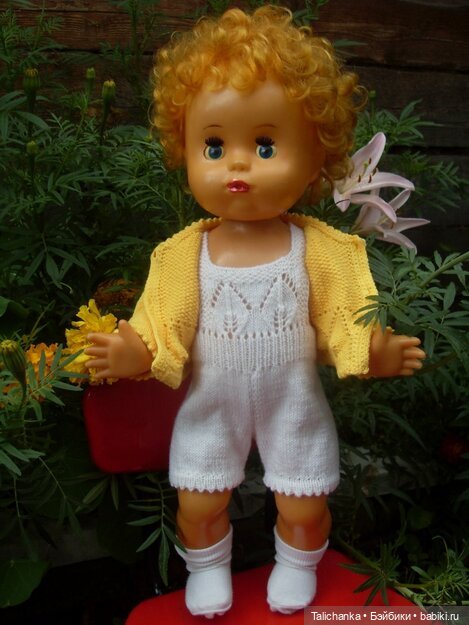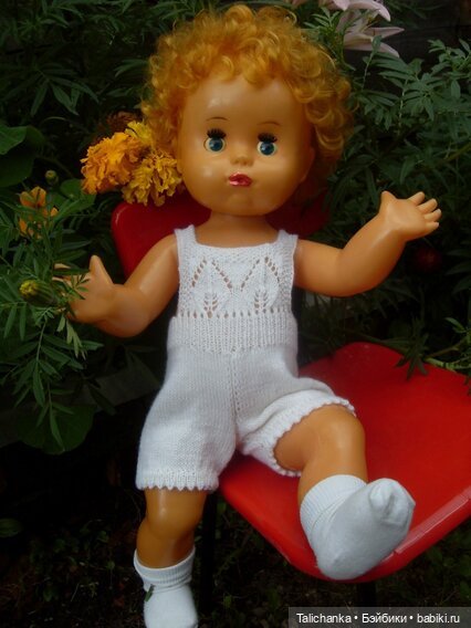 Я тоже обожаю этих Наташенк) у моей подруги такая куколка была, с белыми волосами, такие пышные кудряшки, как одуванчик! И продавалась она в распашонке и ползуночках на лямках. Сшито из фланели, какой то светлой расцветки, может желтенькая. В общем ходила я в гости, играть этой куколкой) то подружка мама Наташи, а я детский доктор, то я мама, а она воспитатель в детском саду) одна куколка, а сколько игр с ней было интересных! У подруги и кроватка была большая как раз для Наташи.