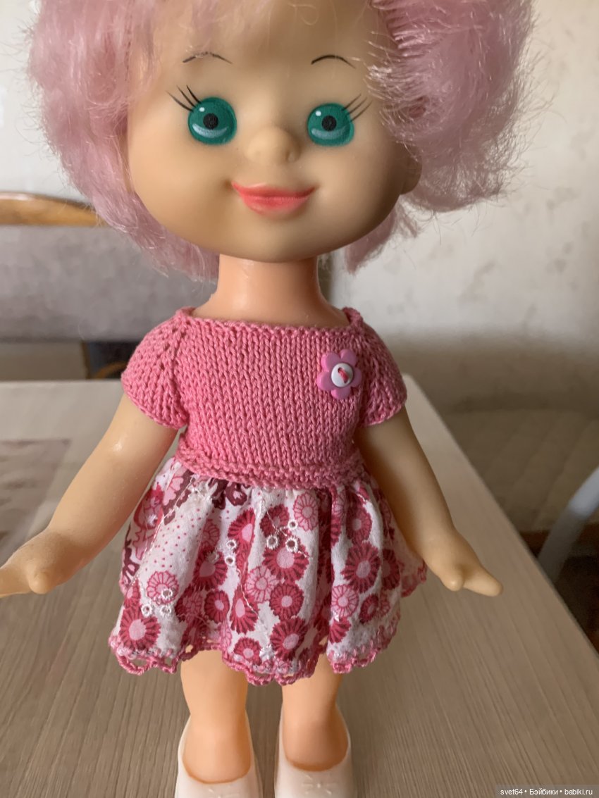 Девочку с коричневыми волосами мы нашли. Отдыхали осенью на карпятнике, отмечали день рождения моего папы и когда уже возвращались домой, по дороге нашли девочку. Радости то было)) она нас сама нашла. Ведь мы там несколько раз ходили! В мяч играли. Ни кого не было, а домой собрались, она прямо у тропинки лежит. Помню много я им шила и вязала. Варя любила этих куколок.
