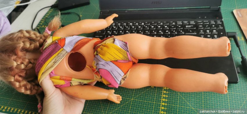 Мне принесли куклу из 70-х, с обгрызанными пятками, как у вашей, потыканным иглами и исписанным телом каляками маляками, полулысую, с покрашенными волосами не один раз.