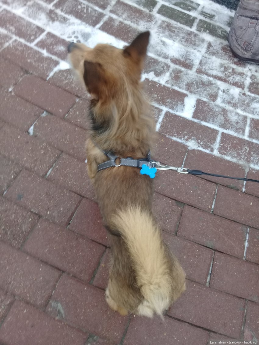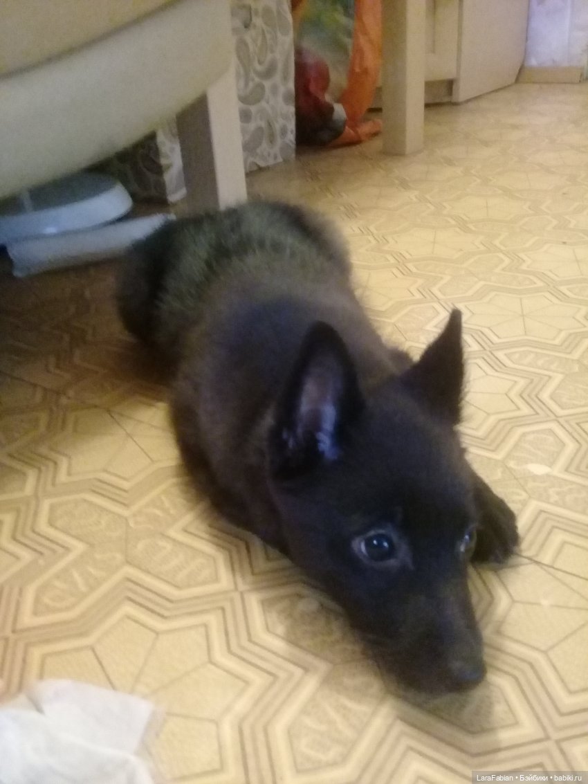 Оставаться дома один не очень любит. Но ничего не портит. Спит в своём домике или на лежанке в прихожей.