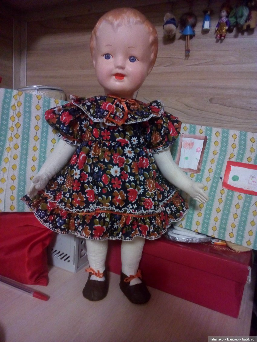 Ляля красавица! Не прибавить, не убавить! Одна из лучших опилочных кукол! счастливое лицо ребенка того времени! Просто светится вся! Наверное, из всех опилочных деток, я бы хотела иметь Лялю и Иру Киевской фабрики «Победа». Но, они обе очень дорогие!