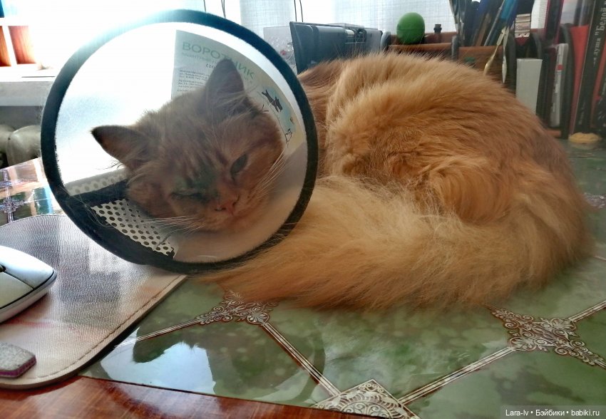 Осмотр, антибиотики, обезболивающие, ещё пару уколов от кошачьих болезней и вот кот дома. Потом операция, два часа на руках после наркоза – кто делал тот знает, что кот после наркоза — это настоящая шайтан машина. Не лежит, не сидит, ходит шатаясь и на все натыкается, в том числе и больным местом. Поэтому уже наученные мы с дочей предпочитаем носить больного на руках эти пару часов.
