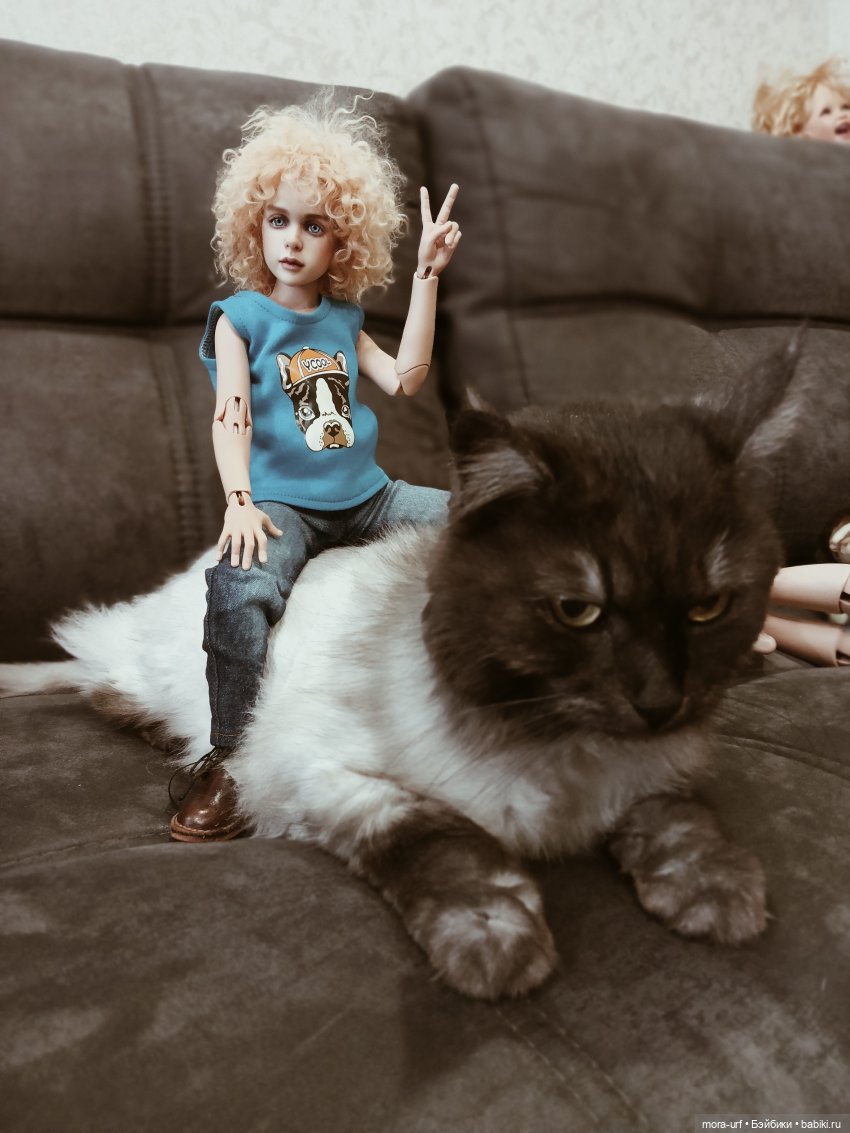 Мой бывший уличный котёнок к Вам в гости. Сейчас ему 10 лет. Это он «помогает» мне куклу фотографировать, поправил ракурс, хулиган такой)