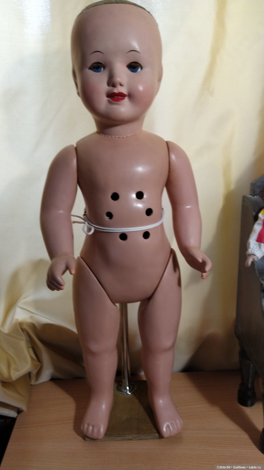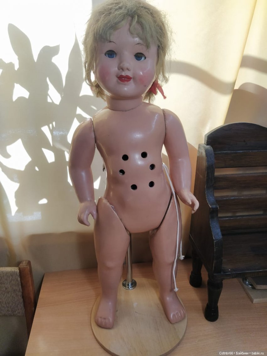 Доброго времени суток, уважаемые коллеги и друзья. И все жители нашей замечательной страны «БэйбиКи». Осень, у нас на Урале бабье лето. Природа дарит такие потрясающие теплые дни. Обилие красок и положительных эмоций. Я работаю с опилочной куклой СССР. Девочка большая, рост 63 см. Очень позитивная. Ко мне приезжают разные куклы. А эта, даже в таком состоянии улыбается. Время, конечно сделало своё дело, но кукла сохранила родную одежду и обувь. Глазки и реснички грязные, эмаль осыпается, есть крок, разрушены лунки ног и рук. Следовательно девочка сама кривенькая и косенькая. Стоять не может. А внутри куклы поселились жучки и паучки. Но всё поправимо. Топик разбиваю на две части. Сейчас покажу Вам реставрацию самой куклы. В следующем топике покажу реставрацию одежды, обуви и парика. Фото много, приятного просмотра, не прощаюсь, с уважением реставратор Светлая. г. Екатеринбург.